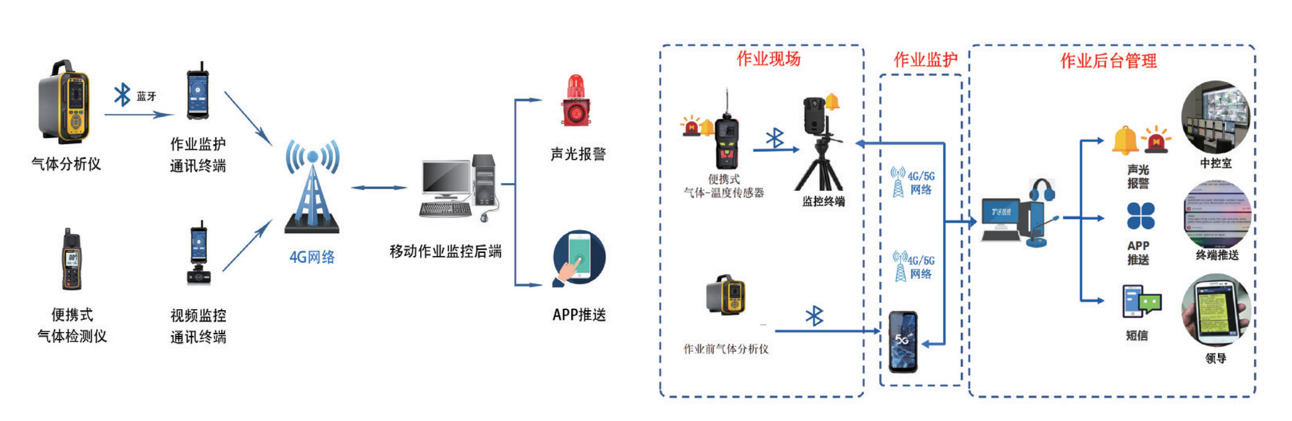 支持實時查看特殊作業辦票、審批許可流程,同時記錄現場監護人員和管理人員對特殊作業的監管意見,并對接固定式攝像頭、移動式攝像頭,實現作業全過程的實時監控、錄像,發生異常情況時即時告警。