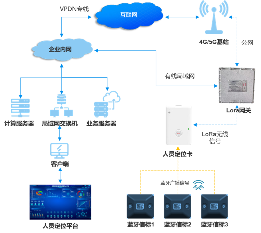 兩者的結(jié)合實(shí)現(xiàn)了室內(nèi)外一體化定位,消除傳統(tǒng)方案的信號(hào)盲區(qū),確保員工在復(fù)雜環(huán)境中的位置信息實(shí)時(shí)可查。