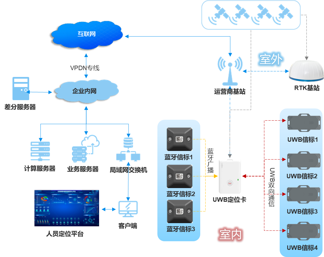 系統內置的智能融合算法能夠根據環境變化和定位需求,自動、無縫地在不同定位技術之間進行切換。當人員或車輛從室外進入室內時,系統能夠迅速從北斗RTK定位切換到藍牙和UWB定位,確保定位的連續性和準確性,避免出現定位中斷的情況。