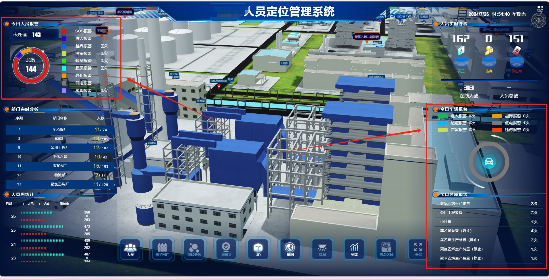 針對涂料廠的安全管控核心需求,新銳科創系統構建了全維度的智能預警體系。系統依托高精度定位數據,結合涂料廠的風險分區特點,可在管理平臺上為易燃易爆原料存儲區、高壓罐區等危險區域設置電子圍欄。當人員或車輛未經授權進入限制區域時,系統會立即觸發聲光報警,同時向管理人員的移動端推送預警信息,實現風險早發現、早干預。對于關鍵崗位如罐區巡檢員,系統可設置人員監測功能,若出現脫崗、滯留或靜止超時等異常情況,自動生成預警并聯動相關負責人,避免因人為疏忽導致安全隱患。更值得關注的是,系統配備的定位終端集成了一鍵呼救功能,操作人員在遭遇化學品泄漏、設備故障等突發險情時,可通過佩戴的定位卡或安全帽終端立即報警,系統將精準定位報警位置并快速聯動應急救援預案,為救援行動爭取關鍵時間。