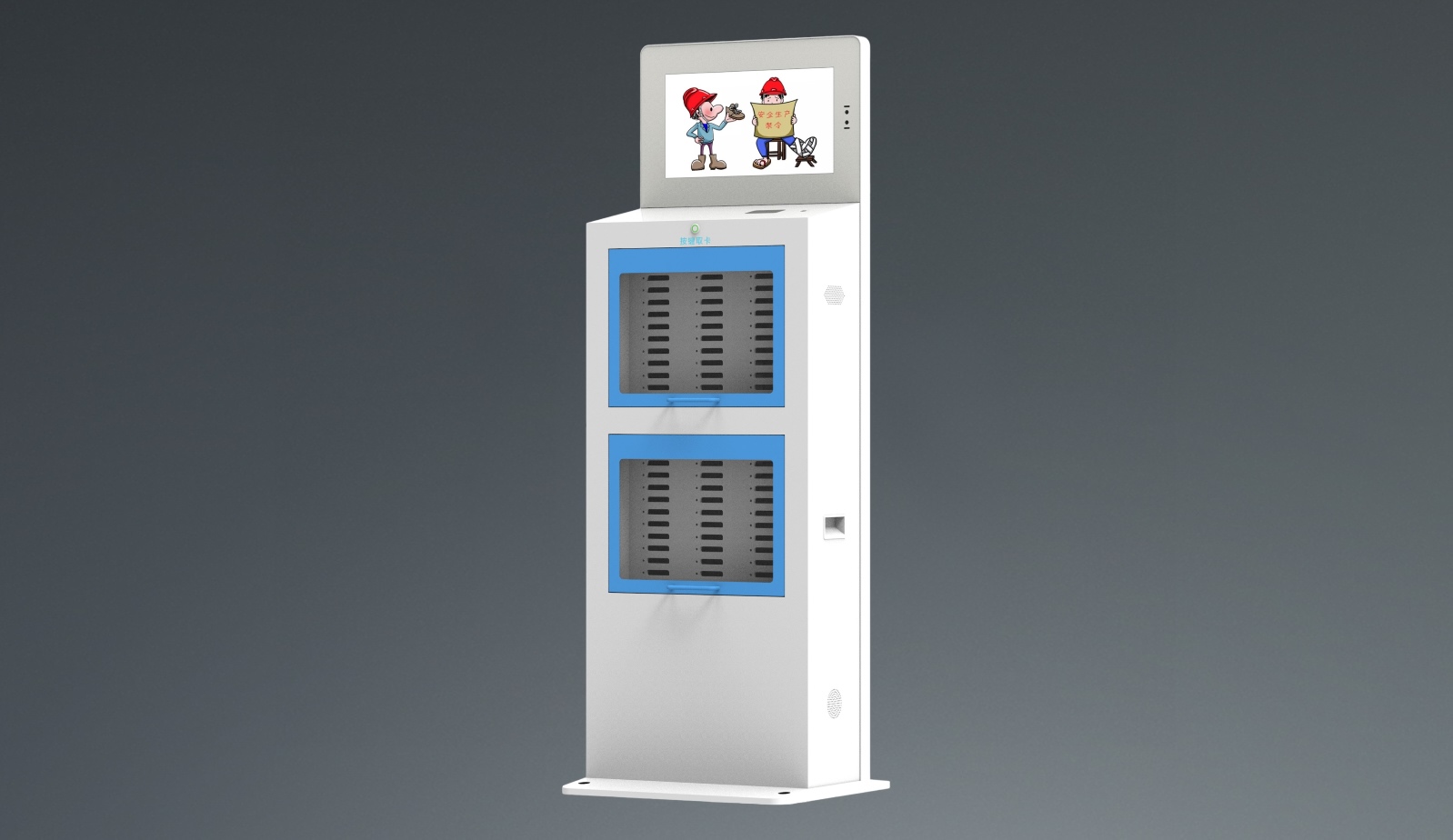 集人臉識別、發卡、考勤打卡、身份綁定、集中充電等功能于一體的智能發卡機充電柜。
