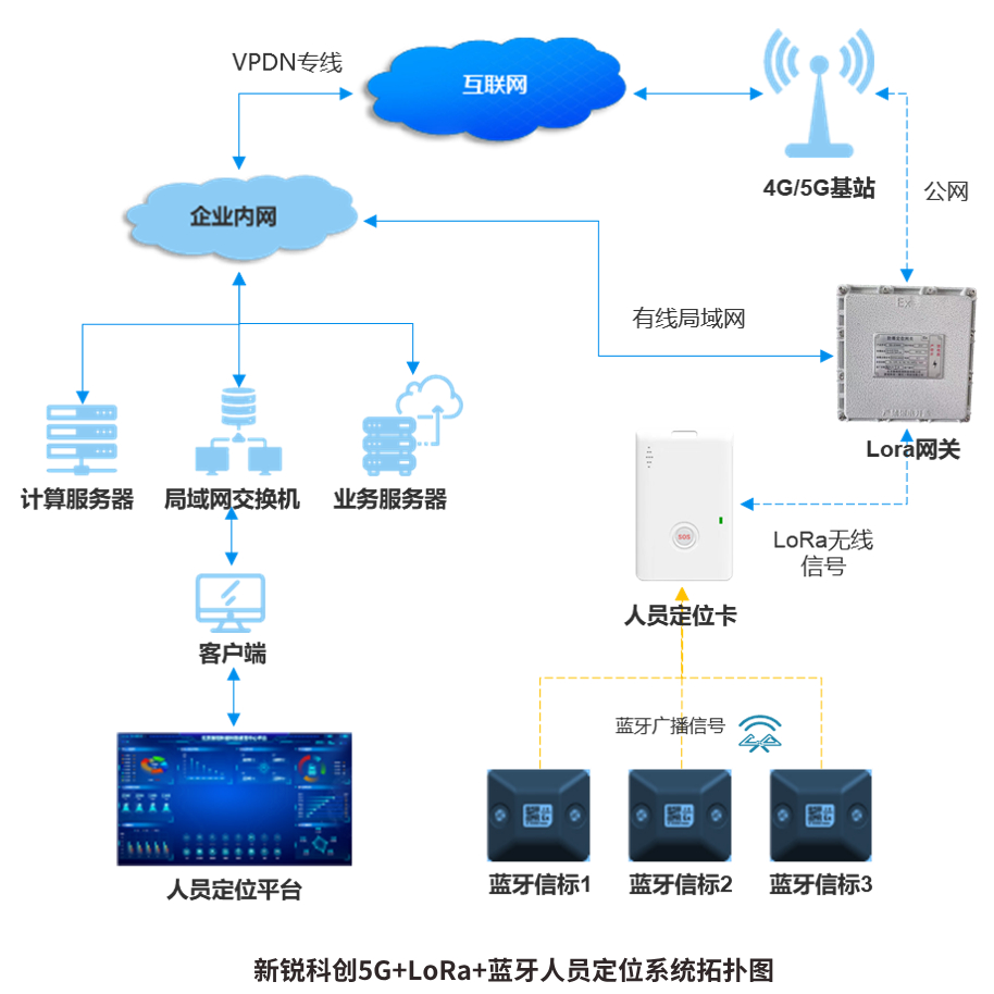 隨著人員定位技術的不斷發展,5G、LoRa、藍牙技術開始應用在人員定位領域。企業部署人員定位系統能夠提升安全管理水平及生產效率。下面為大家介紹5G+LoRa+藍牙人員定位系統解決方案。